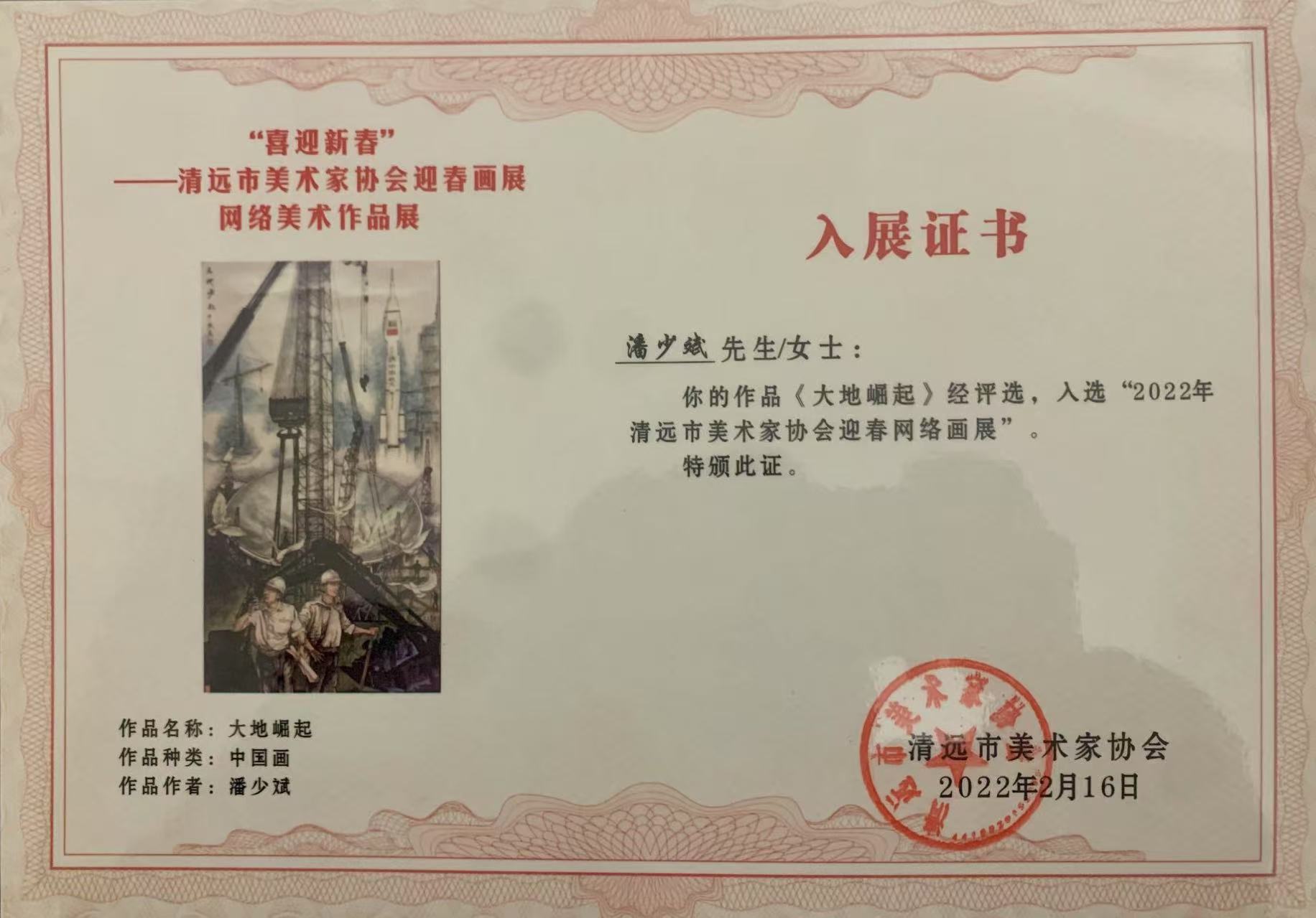 曾参加多项活动和获得多项奖!1991年荣获广东省、清远市青年首届美术展览二等奖刊登清远日报。1995年参加连州市司法局打击犯罪活动系列连环画宣传栏展出,和连州市红瑰杯篮球赛美术设计。2013年入选广东省美术摄影展入选第十二届美术、书法、摄影联展作品:废墟托举、红丝带。2017年荣获中国好品牌影响力书画家作品:雪山铁骨、架起大地桥梁、粤岭横云、穿越、北江金秋。2021年参加连州市庆祝中国共产党成立100周年荣获三等奖作品:净土。2022年入选清远市摄影、书法、美术文学艺术联合会作品:大地崛起。