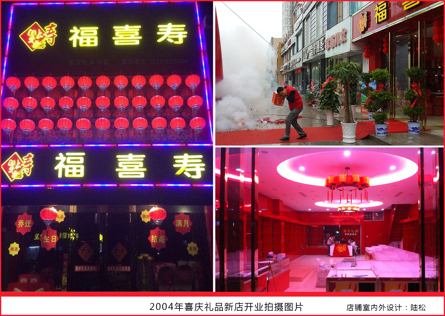 2014年“福喜寿”新店开业,陆松运用CIS理念打造品牌形象,彻底颠覆传统喜铺杂货店的风格,吸引电视台多次报道,创新成为了喜庆礼品行业一道亮丽的风景。他设计的LOGO与礼盒被众多团队效仿,推动中国喜庆礼品走向审美化与规范化,“福喜寿“式喜庆元素为中国喜庆礼品行业树立了新典范。